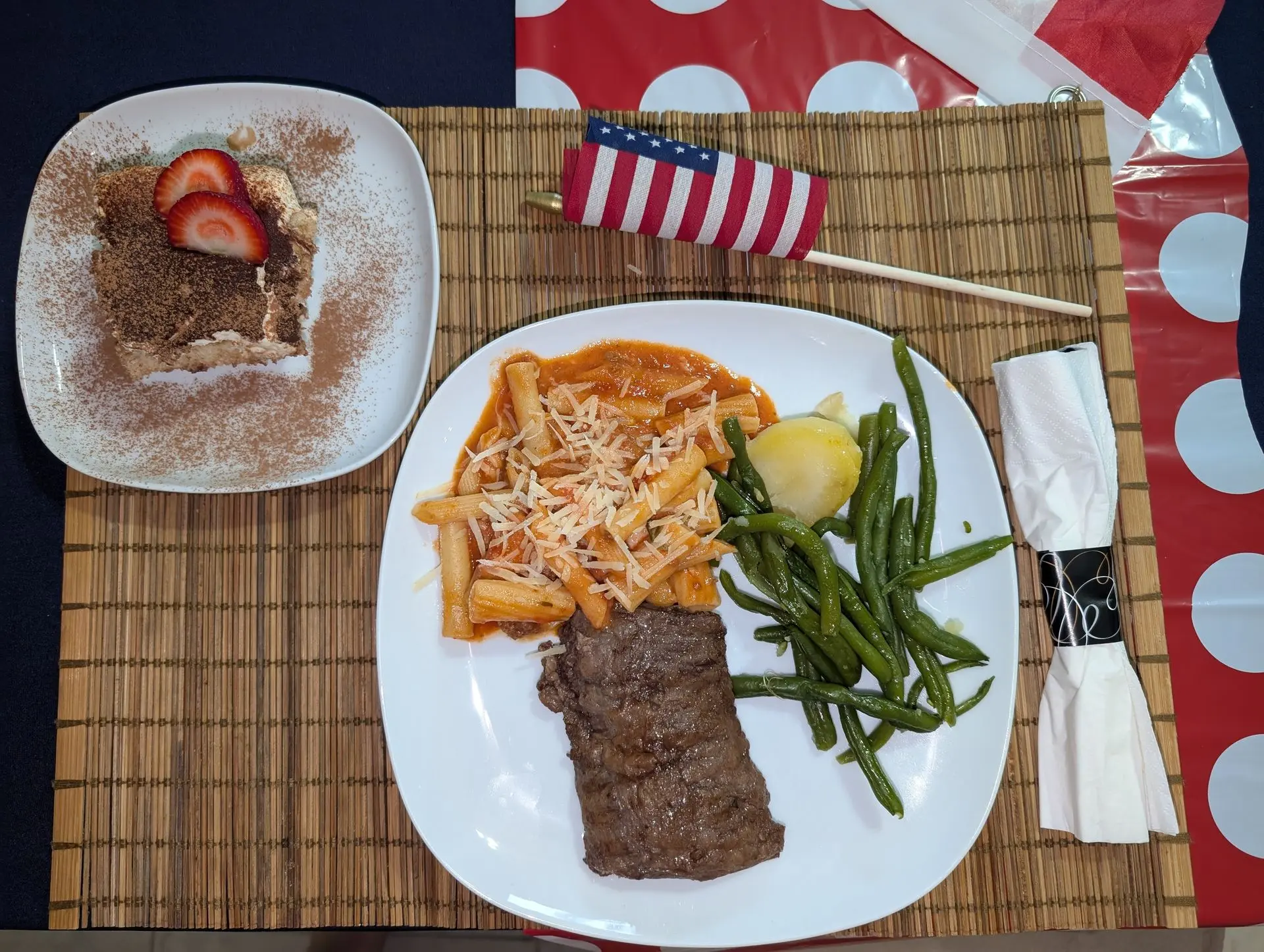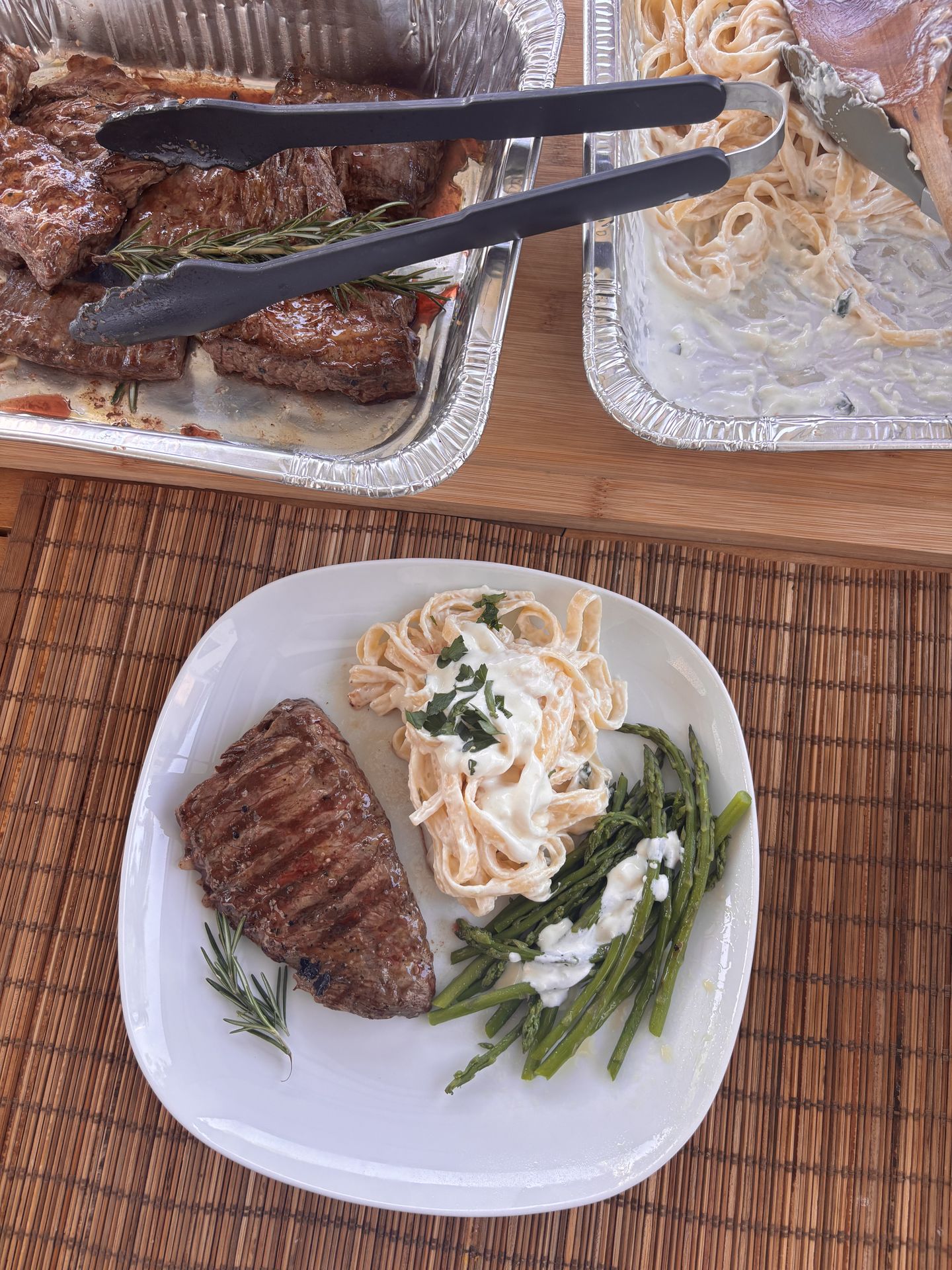 Enjoy a flavorful, home-cooked Italian meal for four complete with pasta, steak, vegetables, and dessert